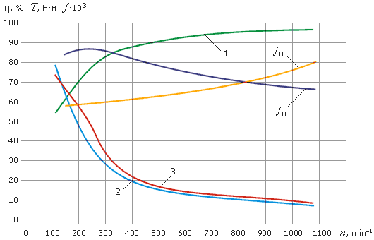 Рис. 2. Характеристики вариатора для высокотягового масла