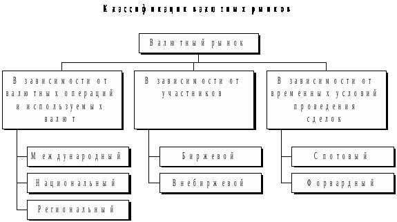 В сделках внутри страны люди используют национальную валюту, но для проведения операций за границей им нужна иностранная валюта. Для этих целей существуют специальные рынки, на которых может быть куплена или продана иностранная валюта и которые называются валютными рынками. Валютный рынок по своим масштабам значительно превосходит рынок товаров и услуг, международного движения капитала, рабочей силы и технологий. На этих рынках частные лица, компании, банки, государственные учреждения взаимодействуют друг с другом с целью обмена одной валюты на другую, которая может быть нужна им по самым разным причинам. Также имеется возможность “спекулировать”, приобретая или продавая валюту, то есть играя на ее будущей цене. Следует отметить, что высокая эффективность работы этих рынков достигается в условиях высокой конкуренции. С институциональной точки зрения валютный рынок представляет собой множество крупных коммерческих банков и других финансовых учреждений, связанных друг с другом сложной сетью современных коммуникационных средств связи с помощью которых осуществляется торговля валютами. В этом смысле валютный рынок не является конкретным местом сбора продавцов и покупателей валют.