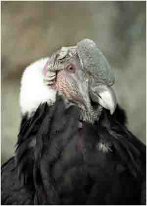 КОНДОР (Vultur gryphus) огромная птица: длина самца около 1,15 м, размах крыльев до 2,75 м. Самки кондора несколько меньше. Окраска взрослых птиц кондора черная с белым воротничком из листовидных перышек. Второстепенные маховые с широкими белыми каймами, плечевые белые с черными основаниями. Голая кожа головы и горла черновато-серая, шеи и зоба — красная. Ноги кондора темно-серые. Радужина красная. Клюв черный с желтой вершиной. У самцов на восковице гребень (у самок его нет). Молодые кондоры бурого цвета, голова у них покрыта пухом. Распространен кондор в Южной Америке от Венесуэлы и Колумбии до южной оконечности материка (Патагония, Огненная Земля) и на Фолклендских островах. В северной части гнездового ареала кондор населяет высокий пояс гор на высоте 3000—5000 м, иногда залетает и выше (у Чимборасо отмечался на высоте более 7000 м). В южной части гнездовой области кондор встречается и в предгорьях, и на равнинах. В гнездовое время кондор держится отдельными парами, в другое время года ведет стайный образ жизни. Гнездится кондор на скалах, иногда устраивая небольшую подстилку из веточек. В кладке 2 яйца. Насиживает самка в течение 54—55 дней. Развитие молодых кондоров медленное, половой зрелости (полного наряда) они, по-видимому, достигают только в шестилетнем возрасте. Кондор кормится в основном падалью, в различной степени разложившейся. Изредка кондоры нападают и на живых животных (новорожденных или ослабевших вигоней, телят и ягнят).
