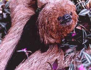 Семейство ЛЕНИВЦЫ (Bradypodidae) Ленивцы — чисто древесные животные, питающиеся листьями и проводящие всю жизнь на деревьях в подвешенном положении спиной вниз. В связи с этим 3 пальца на задних и 2 или 3 пальца на передних лапах вместе с мощными изогнутыми когтями образуют как бы крючки, при помощи которых животные висят или медленно двигаются. В противоположность всем прочим зверям их шерсть имеет ворс, направленный не к брюху, а к хребту, так что дождевая вода легко скатывается с тела. Единственный способ самозащиты этих безобидных животных — оставаться незамеченными, с чем и связана их крайняя медлительность. Среди листвы деревьев в дождевом тропическом лесу эти животные действительно совершенно незаметны, чему способствует зеленоватый оттенок их длинной грубой шерсти. Эта зеленая окраска серо-коричневой шерсти зависит от сине-зеленых микроскопических водорослей (Trichophilus и Cyanoderma), поселяющихся в продольных и поперечных бороздках волос ленивцев. На теле этих животных почти всю жизнь проводит еще один сожитель — особый вид бабочки-огневки, откладывающей свои яйца в шерсть ленивца.