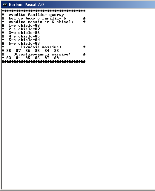 Составить программу на языке Turbo Pascal для параллельной сортировки множества из n чисел, где n- мощность множества, состоящего из букв фамилии, n>2.