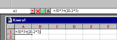 1.В ячейку А1 ввести = 10*5+20*(20-2*5)