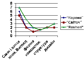 По закінченні досліду нами була побудована діаграма у відповідності з результатами досліджень трьох різних видів шоколадної плитки: