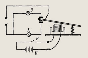 разомкнет цепь. К выводам катушки электромагнита
