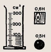 До какого уровня поднимется вода в мензурке, если в ней будет плавать брусок; шар (рис. 193)?