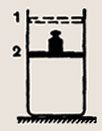 Под действием груза поршень в цилиндре опустился (рис. 15). Когда же груз удалили, то поршень занял прежнее положение 1. Как при этом изменилось отношение объема воздуха, находящегося под поршнем, к сумме объемов его молекул?