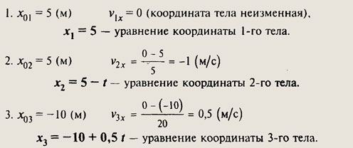 х1 =5 (м); x2 = 5 - 1 • 5 = 0 (м); х3 = -10 + 0,5 • 5 = -7,5 (м).