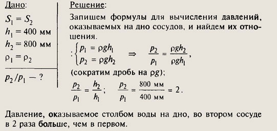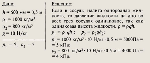 2. Давление на дно в этих сосудах одинаково, так как высота столбов одинакова.
