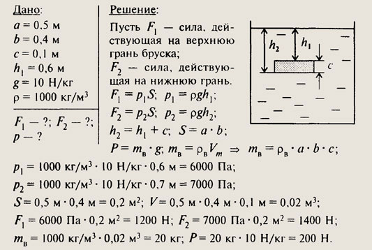 1. Брусок давит на поверхность воды и это давление передается по всем направлениям, а также на дно сосуда.