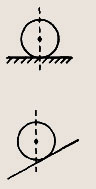 б) Сумма сил, действующих на тело, не равна нулю, вертикаль, проведенная через центр тяжести тела, не проходит через точку опоры. Тело не в равновесии и скатывается.